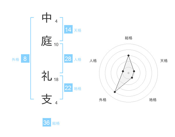 中庭 礼支さんを姓名の画数から五運を鑑定