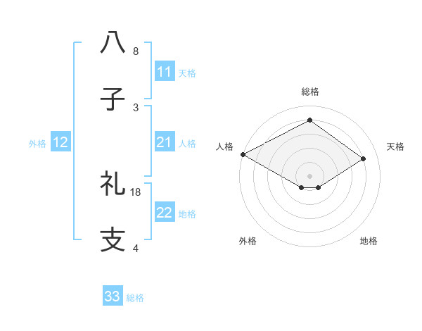 八子 礼支さんの総格は33画の4点!