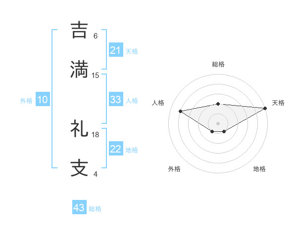 吉満 礼支さんの総格は43画の2点!