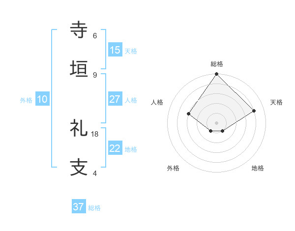 寺垣 礼支さんの総格は37画の5点!
