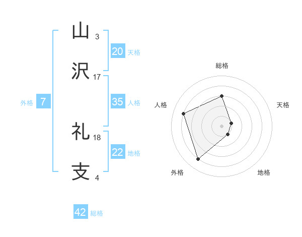 山沢 礼支さんを姓名の画数から五運を鑑定