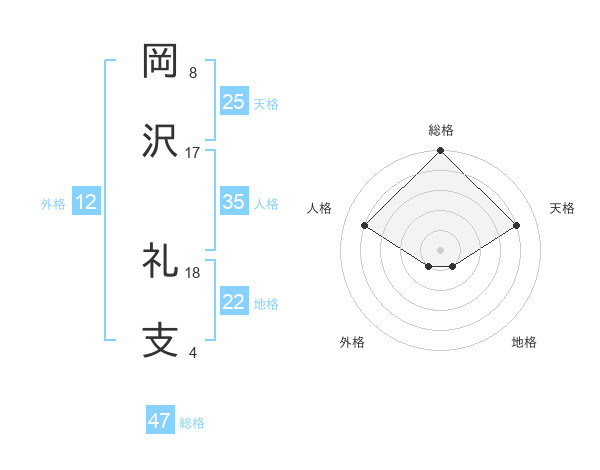 岡沢 礼支さんの総格は47画の5点!