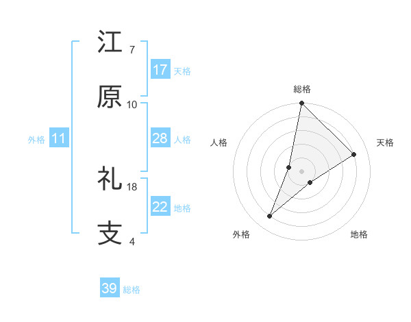 江原 礼支さんの総格は39画の5点!