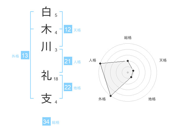 白木川 礼支さんの外格は13画の5点!
