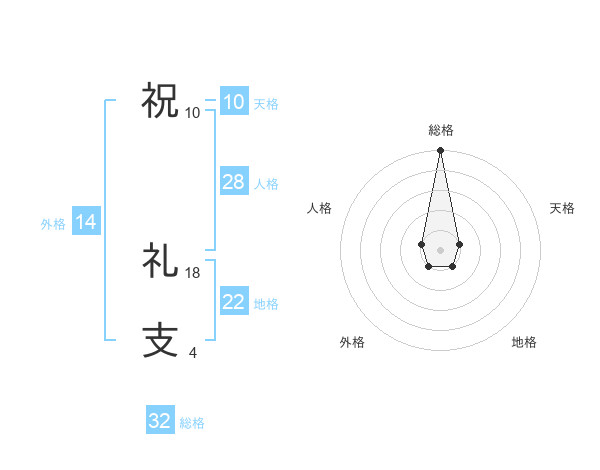 祝 礼支さんの総格は32画の5点!
