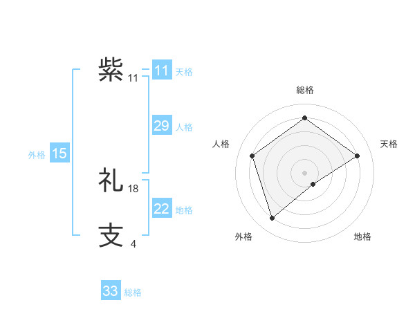 紫 礼支さんの総格は33画の4点!