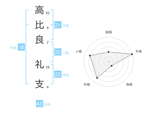 高比良 礼支さんの天格は21画の5点!