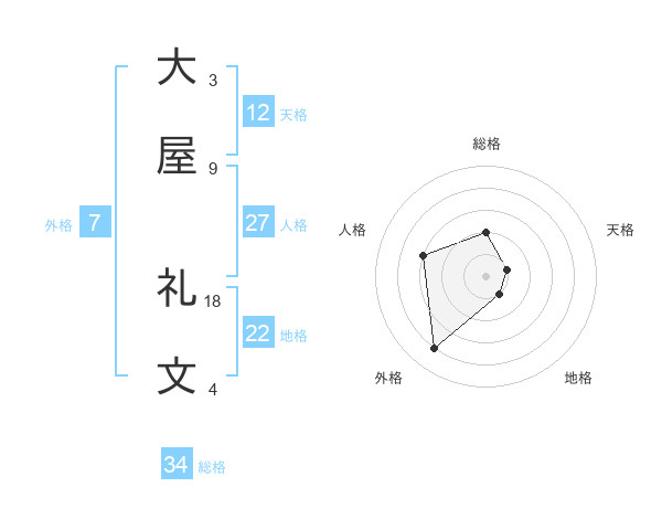大屋 礼文さんを姓名の画数から五運を鑑定