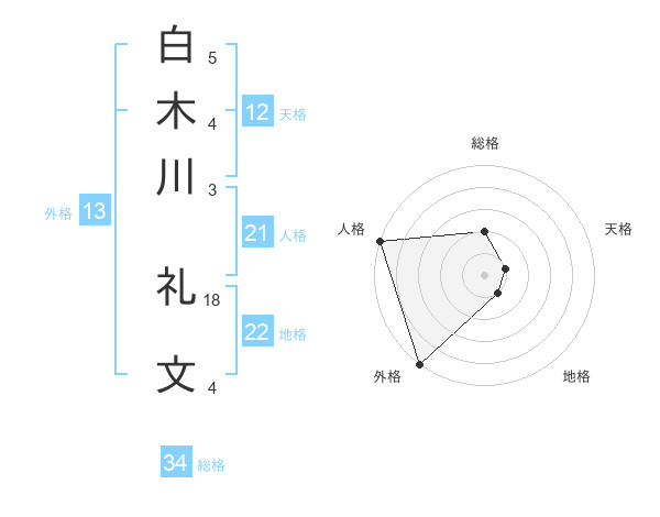 白木川 礼文さんを姓名の画数から五運を鑑定