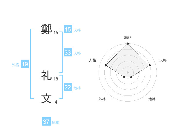 鄭 礼文さんの天格は15画の4点!