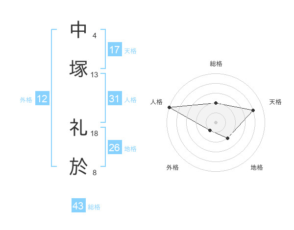 中塚 礼於さんを姓名の画数から五運を鑑定