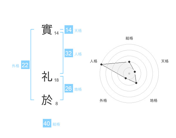 實 礼於さんの総格は40画の2点!