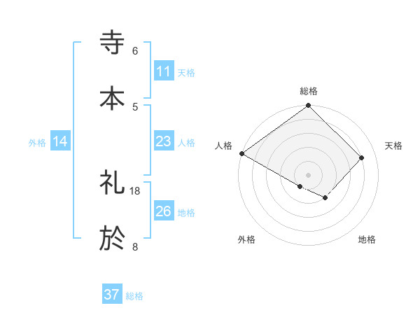 寺本 礼於さんを姓名の画数から五運を鑑定