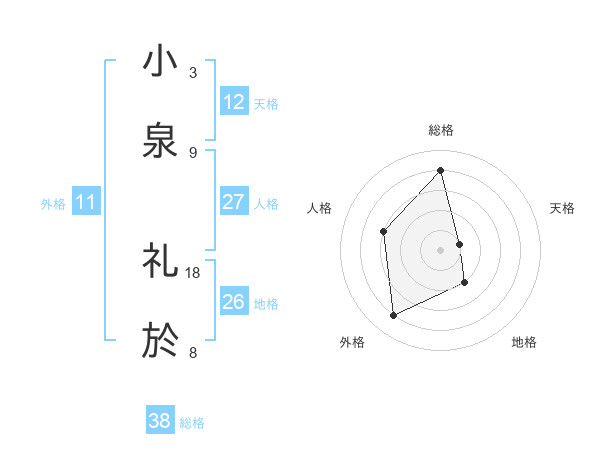 小泉 礼於さんを姓名の画数から五運を鑑定