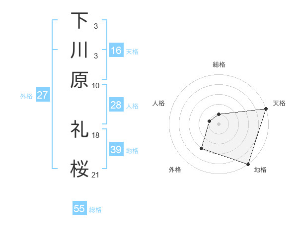 下川原 礼桜さんを姓名の画数から五運を鑑定