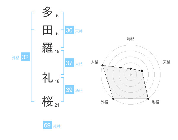 多田羅 礼桜さんを姓名の画数から五運を鑑定