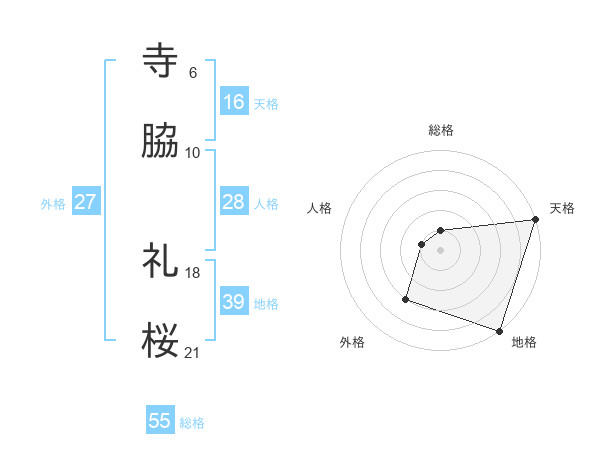 寺脇 礼桜さんの天格は16画の5点!