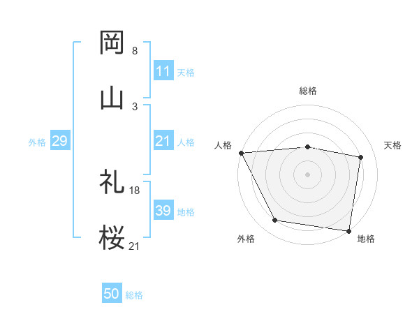 岡山 礼桜さんを姓名の画数から五運を鑑定