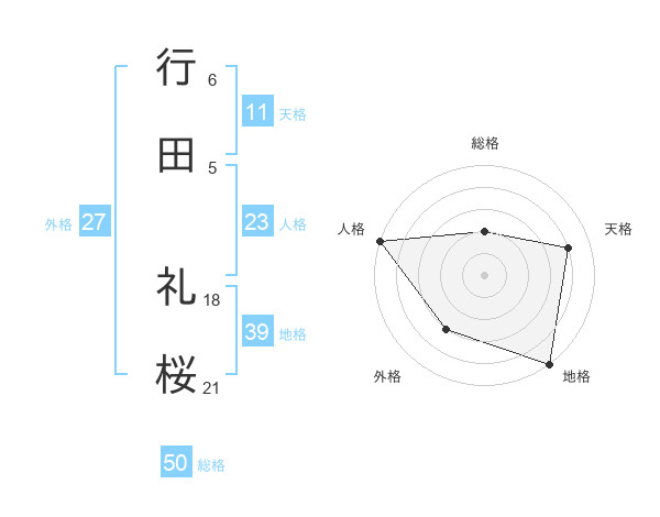 行田 礼桜さんの総格は50画の2点!