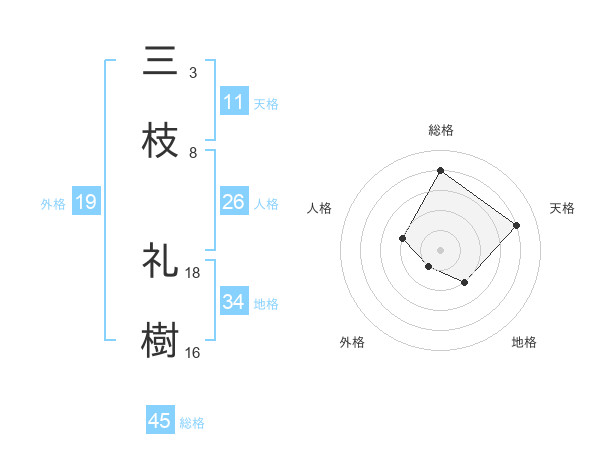 三枝 礼樹さんの総格は45画の4点!