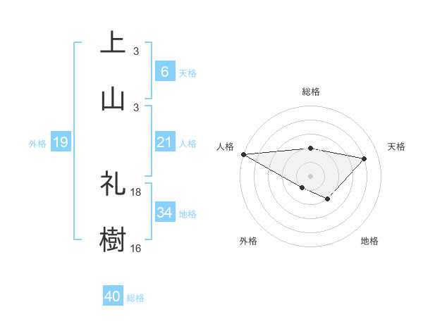上山 礼樹さんを姓名の画数から五運を鑑定