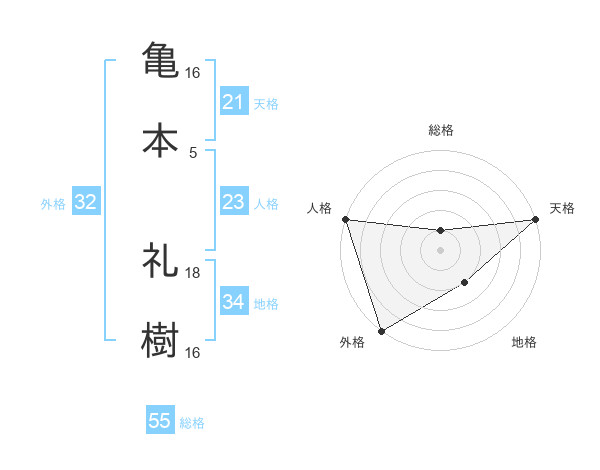 亀本 礼樹さんの天格は21画の5点!