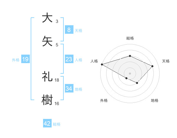 大矢 礼樹さんを姓名の画数から五運を鑑定