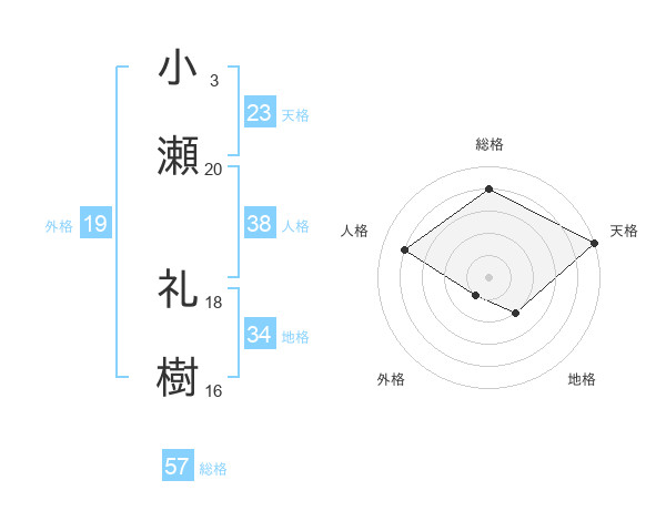 小瀬 礼樹さんの天格は23画の5点!