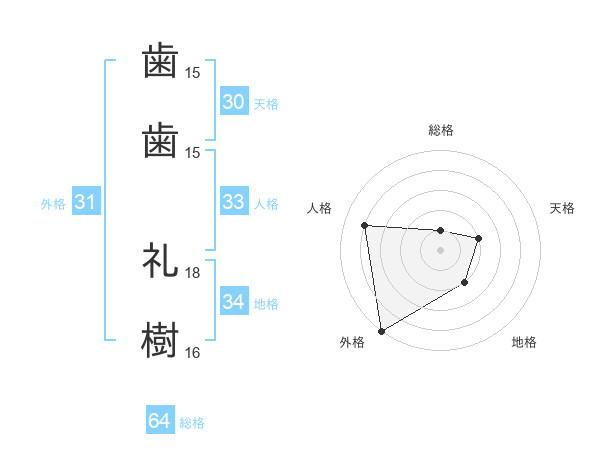 歯歯 礼樹さんを姓名の画数から五運を鑑定