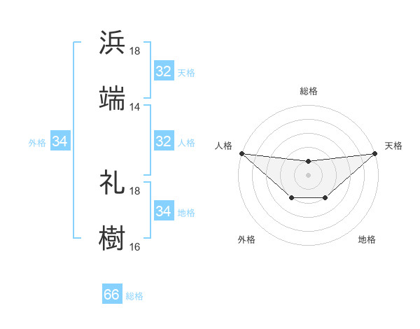 浜端 礼樹さんの天格は32画の5点!