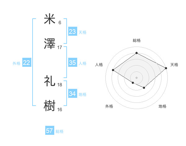 米澤 礼樹さんを姓名の画数から五運を鑑定
