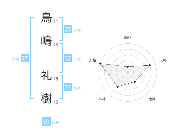鳥嶋 礼樹さんの総格は59画の1点!