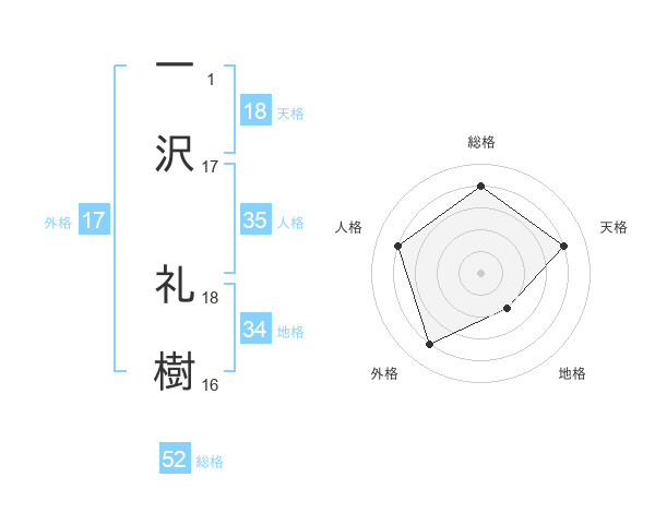 一沢 礼樹さんを姓名の画数から五運を鑑定