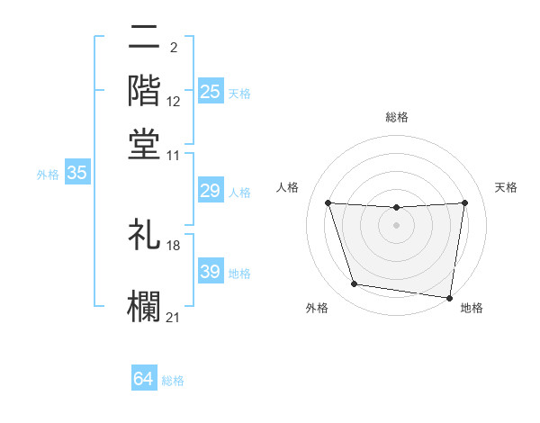 二階堂 礼欄さんの総格は64画の1点!