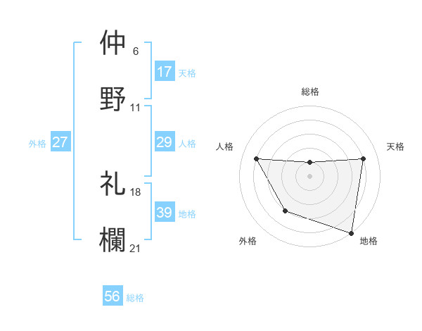 仲野 礼欄さんの天格は17画の4点!