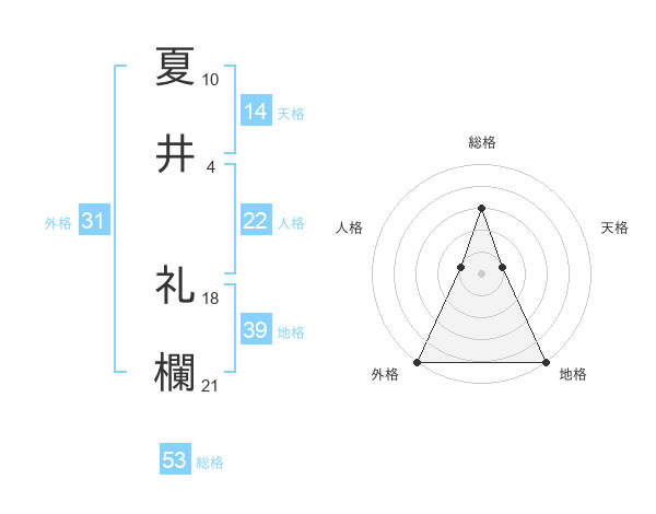 夏井 礼欄さんを姓名の画数から五運を鑑定