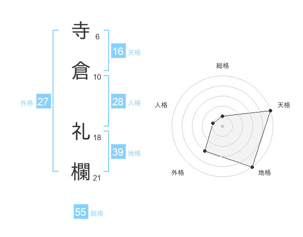 寺倉 礼欄さんを姓名の画数から五運を鑑定