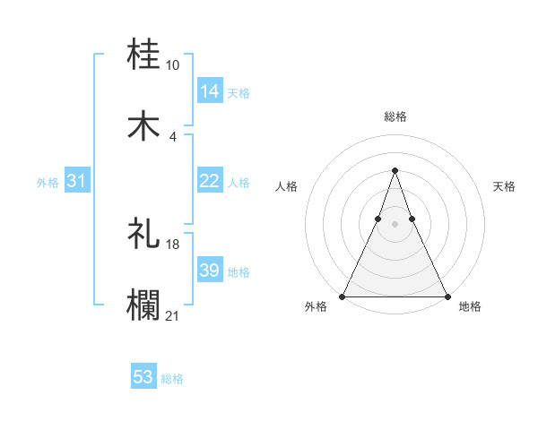 桂木 礼欄さんを姓名の画数から五運を鑑定