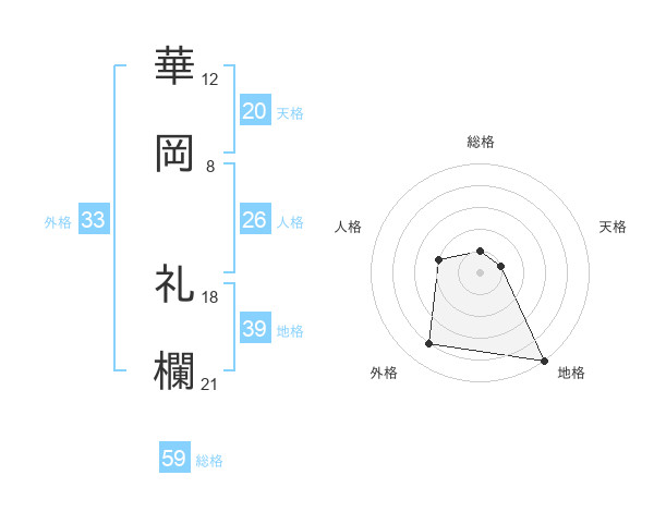 華岡 礼欄さんの総格は59画の1点!