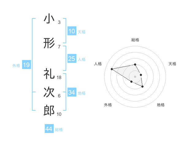 小形 礼次郎さんの総格は44画の2点!
