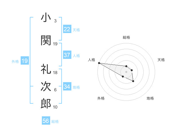 小関 礼次郎さんを姓名の画数から五運を鑑定