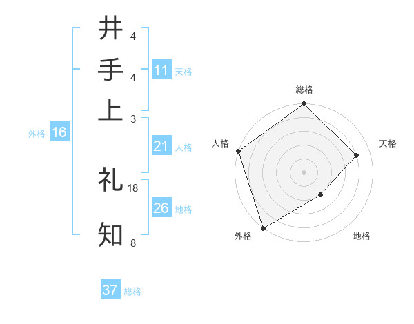井手上 礼知さんの総格は37画の5点!