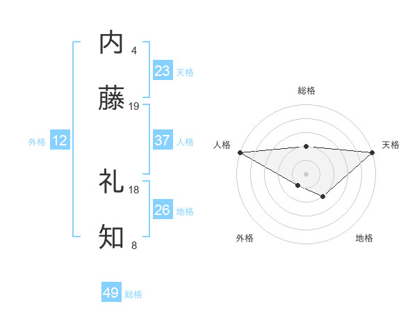 内藤 礼知さんを姓名の画数から五運を鑑定