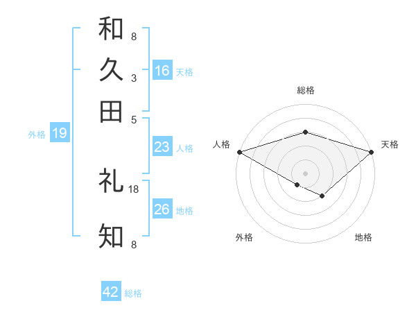 和久田 礼知さんの天格は16画の5点!
