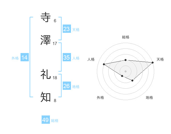 寺澤 礼知さんの天格は23画の5点!