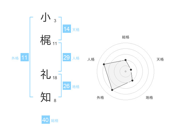 小梶 礼知さんの外格は11画の4点!