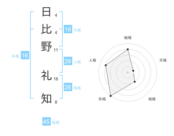 日比野 礼知さんを姓名の画数から五運を鑑定