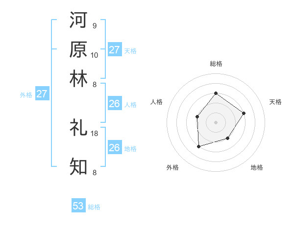 河原林 礼知さんを姓名の画数から五運を鑑定