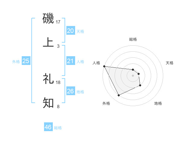 磯上 礼知さんを姓名の画数から五運を鑑定