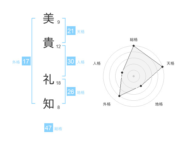 美貴 礼知さんを姓名の画数から五運を鑑定